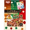 小麦粉、肉類(鶏ささみ肉、ビーフ)、粉末水飴、小麦たん白、動物性油脂、酵母エキス、ニンジン、食物繊維(オレンジ由来)、プロセスチーズ、ビール酵母、かぼちゃ、キャベツ、えごま油(オメガ3&6脂肪酸含有)、乾燥酵母細胞壁、香味油、グリセリン、乳酸Na、オリゴ糖、pH調整剤、加工でん粉、香料、酸化防止剤(ローズマリー抽出物、抽出ビタミンE)、タウリン、着色料(二酸化チタン、赤40、黄4、青1)