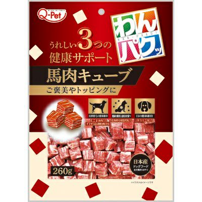 小麦粉、馬肉、粉末水飴、小麦たん白、酵母エキス、動物性油脂、酵母パウダー、食物繊維(オレンジ由来)、植物性油脂、えごま油(オメガ3&6脂肪酸含有)、乾燥酵母細胞壁、グリセリン、乳酸Na、オリゴ糖、pH調整剤、加工でん粉、香料、着色料(二酸化チタン、赤40)、酸化防止剤(ローズマリー抽出物、抽出ビタミンE)、タウリン