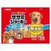 保存料・着色料・発色剤・酸化防止剤を使用せず、ヘルシーなソフトタイプに仕上げた嗜好性の高いスナックです。鶏肉の中でも特に高たん白質で低脂肪な鶏ササミを使用。おいしさはそのままで、脂肪分と塩分をそれぞれ約50%※抑えて調理しました。ソフトタイプで食べやすいので、ワンちゃんも大満足!