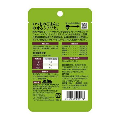他の画像を見る ドッグフード ウェット【1袋/40g】×15個 セレクトバランス Plus 鶏挽き肉スープ仕立て むね肉&レバー腎臓・心臓の健康維持1才以上の成犬用 セレクトバランス 皮膚と体の健康を維持するヘルシーフード【犬 誕生日】【同梱A】shippotv 販売価格 ¥ 2,850 税込 カートに入れる お気に入りに登録する