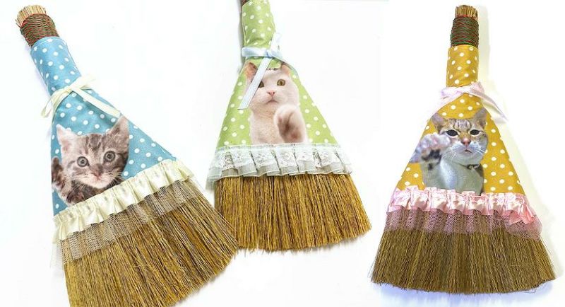 イベント、店舗等で大人気のハンドメイド猫雑貨ユニット、AIRAのおもちゃ箱さんによる手ほうきです!
