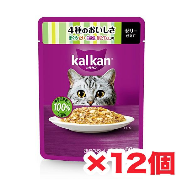 4. キャットフード 猫 パウチ【60g/1袋】12袋 カルカン パウチ 4種のおいしさ まぐろ・たい・白身魚・ほたてだし入り ウェットフード 総合栄養食 マースジャパン【猫 誕生日】【同梱A】shippotv