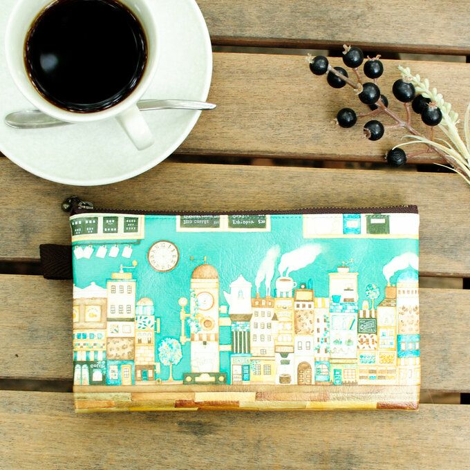平ポーチ「カフェの奥のコーヒー街」 【同梱A】