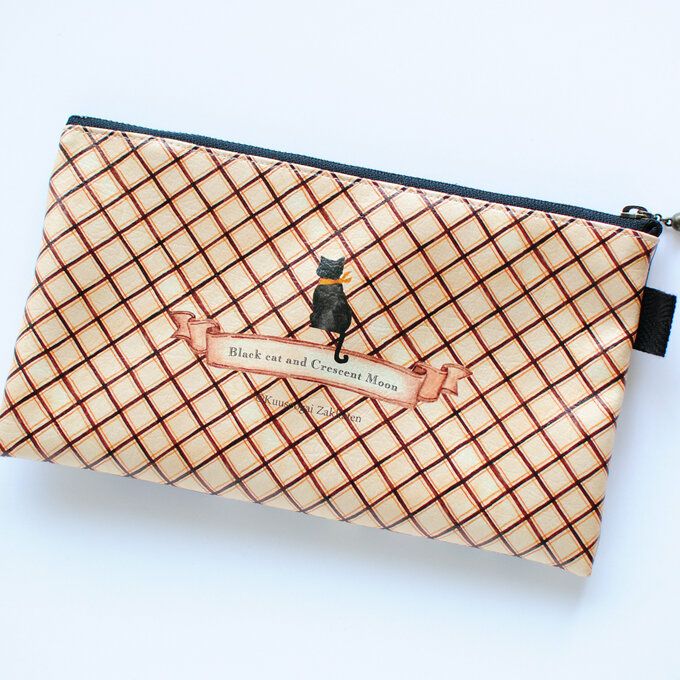 平ポーチ「黒猫と三日月の街」 【同梱A】