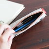 100%リネン生地に裏張りをして仕上げたかわいいサイズのペンケース。