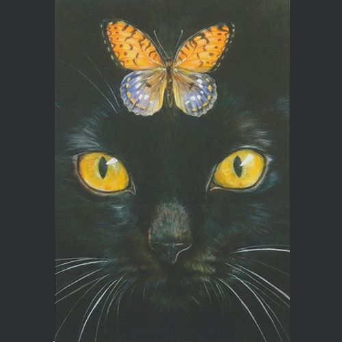 こちらを見つめる金の瞳と、鮮やかな蝶にどきりとする一枚。