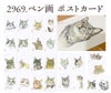 猫 ペン画 ポストカード【2969.】 キジ 白黒 サバ白 三毛 サバ 茶白 茶トラ サビ 【同梱B】