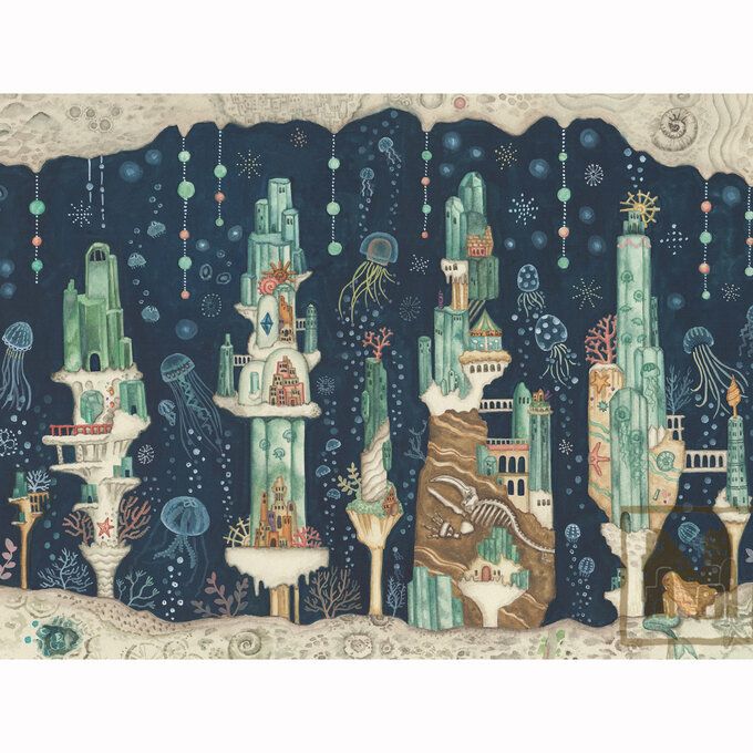 深海に佇む鉱石アクアマリンの竜宮に漂うクラゲたちの楽園。
