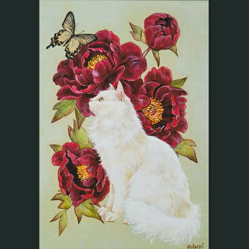 ポストカード 「黒い牡丹と白猫」 【同梱A】