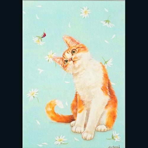 ポストカード 「てんとう虫と茶白猫」 【同梱A】