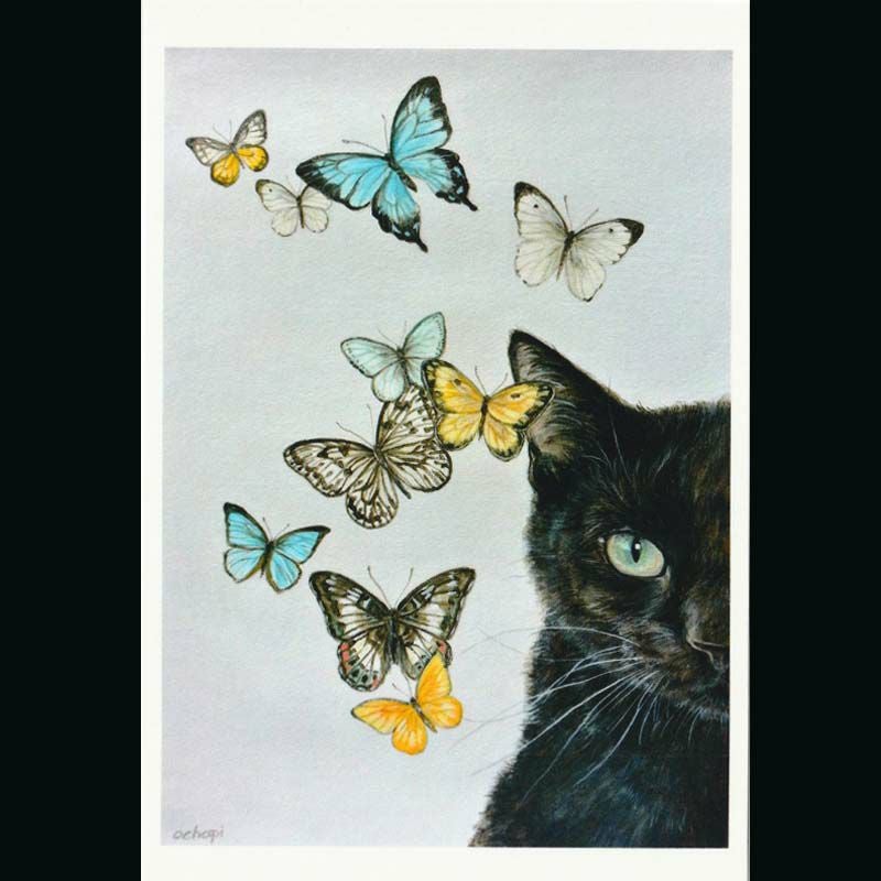 ポストカード 「猫に蝶(黒猫)」 【同梱A】