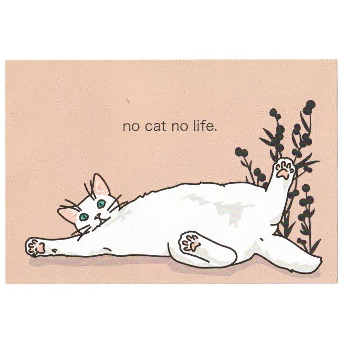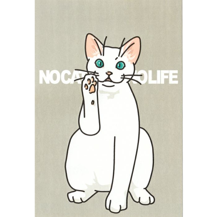 ポストカード サトヲサチコ 猫 手招き 白猫 ベージュ NO CAT NO LIFE 【同梱A】