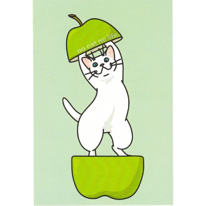 ポストカード サトヲサチコ 猫 青りんごと白猫 グリーン no cat no life 【同梱A】