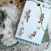 玉乗りした猫に、音符とパールが散りばめられた、揺れる可愛いデザインです