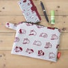 持ち手付きのフラットポーチはバッグの隙間にもスルッと入れやすい形です。