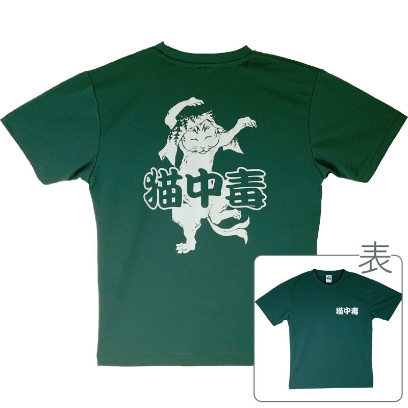 猫中毒ロゴTシャツ アイビーグリーン 男女兼用(速乾ドライタイプ)