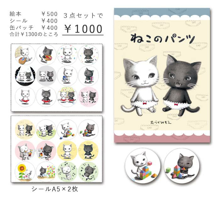 あの「ねこのパンツ」の絵本や、各シーンのシール、缶バッジがお得なセットで登場です!