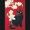 「マグノリアと黒猫」白、黒、赤のハーモニーが上品で、黒猫の良さが引き立ちます。