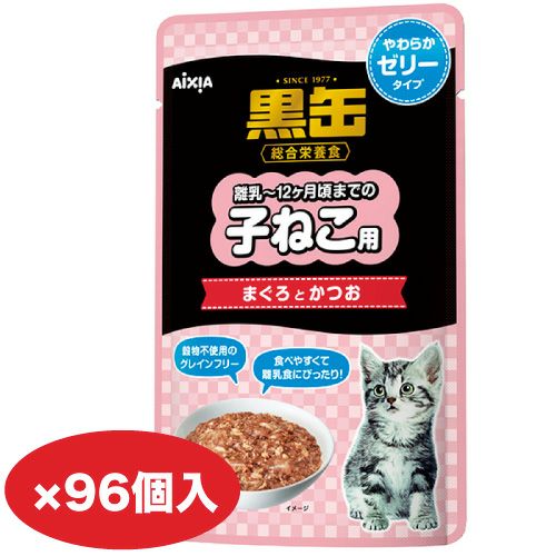 【ケース販売】黒缶 パウチ 子ねこ用 まぐろとかつお やわらかゼリータイプ×96【同梱A】shippotv