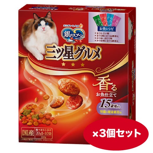 穀類(トウモロコシ、コーングルテンミール、小麦粉、パン粉)、肉類(ビーフミール、ポークミール、チキンエキス、チキンミール)、油脂類、魚介類(フィッシュエキス、フィッシュミール、かつお節、まぐろ節、まぐろミール、かつおミール、煮干パウダー、白身魚ミール、乾燥シラス、タイパウダー、ホタテパウダー)、ビール酵母、豆類(大豆)、糖類(オリゴ糖)、セルロースパウダー、酵母エキス、野菜類(ニンジンパウダー、カボチャパウダー、ホウレンソウパウダー)、ミネラル類(カルシウム、塩素、コバルト、銅、鉄、ヨウ素、カリウム、マンガン、リン、亜鉛)、調味料、ビタミン類(A、B1、B2、B6、B12、C、D、E、K、コリン、ナイアシン、パントテン酸、ビオチン、葉酸)、着色料(二酸化チタン、赤色102号、赤色106号、黄色4号、黄色5号、青色1号)、アミノ酸類(タウリン)、酸化防止剤(ミックストコフェロール、ハーブエキス)