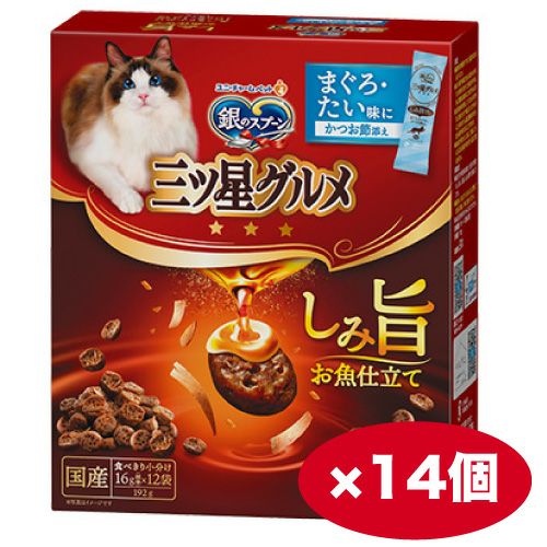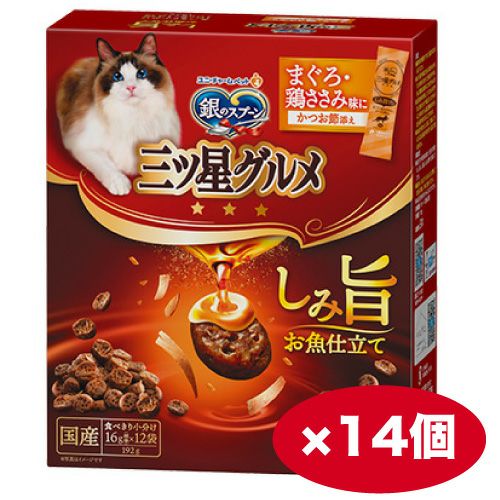 他の画像を見る キャットフード 猫 【192g×14個】銀のスプーン 三ツ星グルメ しみ旨 お魚仕立て まぐろ・たい味にかつお節添え カリカリ ドライ【同梱A】shippotv 販売価格 ¥ 15,926 税込 カートに入れる お気に入りに登録する