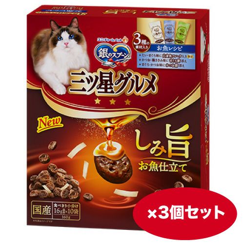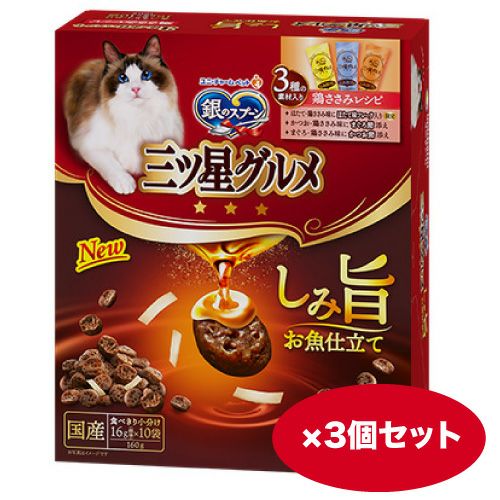 他の画像を見る キャットフード 猫 【160g×3個】銀のスプーン 三ツ星グルメ しみ旨 お魚仕立て お魚・鶏ささみレシピ3種のアソート カリカリ ドライ【同梱A】shippotv 販売価格 ¥ 3,237 税込 カートに入れる お気に入りに登録する