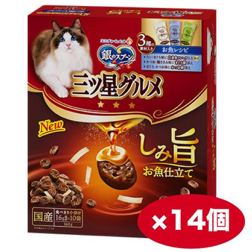 他の画像を見る キャットフード 猫 【160g×14個】銀のスプーン 三ツ星グルメ しみ旨 お魚仕立て 3種の素材入りお魚レシピ カリカリ ドライ【同梱A】shippotv 販売価格 ¥ 15,926 税込 カートに入れる お気に入りに登録する
