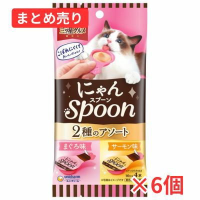 4. 【賞味期限2025年10月まで】銀のスプーン 三ツ星グルメ おやつ にゃんSpoon 2種のアソート まぐろ&サーモン味 40g×6個 まとめ売り【同梱B】