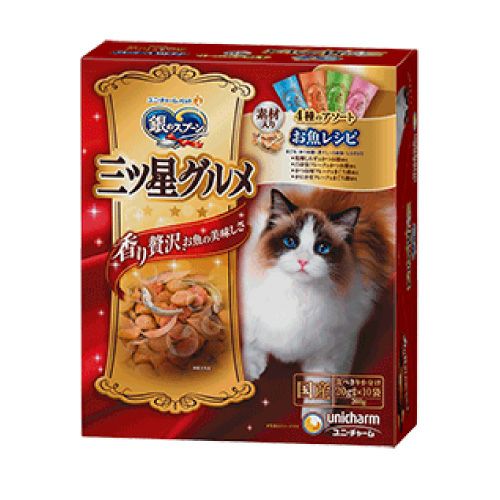 香ばしく焼き上げた粒に贅沢な素材のうまみたっぷりでおいしく仕上げました。猫ちゃんが喜ぶお魚のおいしさがひと箱に4種類詰まった贅沢なおいしさ