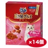 肉類(チキンミール、ポークミール、ビーフミール、チキンエキス)、穀類(トウモロコシ、小麦粉、コーングルテンミール)、油脂類、魚介類(フィッシュミール、フィッシュエキス、まぐろミール、かつお節、煮干パウダー、白身魚ミール、乾燥シラス)、ビール酵母、酵母エキス、乳類(脱脂粉乳)、調味料、ミネラル類(カルシウム、塩素、コバルト、銅、鉄、ヨウ素、カリウム、マンガン、ナトリウム、リン、亜鉛)、ビタミン類(A、B1、B2、B6、B12、C、D、E、K、コリン、ナイアシン、パントテン酸、ビオチン、葉酸)、着色料(二酸化チタン、赤色102号、赤色106号、黄色4号、黄色5号)、アミノ酸類(タウリン)、酸化防止剤(ミックストコフェロール、ハーブエキス)