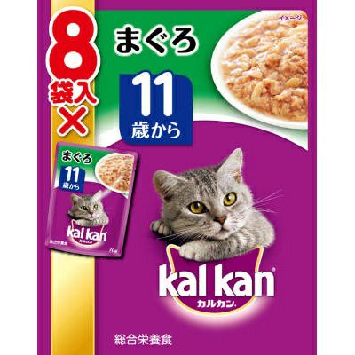 厳選されたまぐろをジューシーなゼリー仕立てにしました。11歳以上の猫に必要な栄養素がバランスよく含まれた総合栄養食です。食べやすい小さめフレーク。