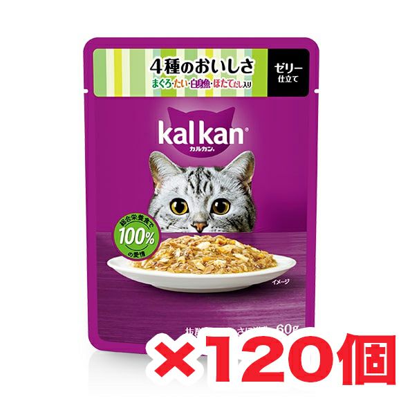 キャットフード 猫 パウチ【60g/1袋】120袋 カルカン パウチ 4種のおいしさ まぐろ・たい・白身魚・ほたてだし入り ウェットフード 総合栄養食 マースジャパン【猫 誕生日】【同梱A】shippotv