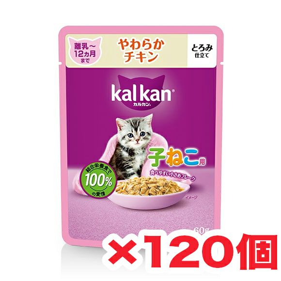 子猫 キャットフード 猫 パウチ【60g/1袋】120袋 カルカン パウチ 12ヵ月までの子ねこ用 やわらかチキン ウェットフード 総合栄養食 マースジャパン【猫 誕生日】【同梱A】shippotv