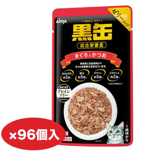 DHA、EPA、鉄分、タウリン、ビタミンEを含むまぐろとかつおの赤身肉ベースの総合栄養食。穀物が苦手な猫にも適したグレインフリー設計。善玉菌を増やし腸内の健康をサポートするオリゴ糖を配合。ゼリータイプ。