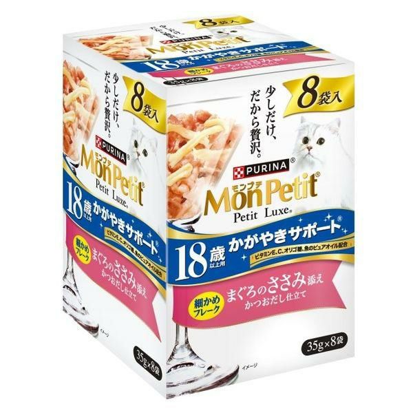 他の画像を見る キャットフード 猫 パウチ【35g/1袋】8袋 モンプチ プチリュクスパウチ ピュリナ 18歳以上用 かがやきサポート まぐろのしらす添え かつおだし仕立て 35g×8P 特別なひと時にもぴったりミニサイズ おやつ ご褒美 トッピング【猫 誕生日】【同梱A】shippotv 販売価格 ¥ 1,857 税込 カートに入れる お気に入りに登録する