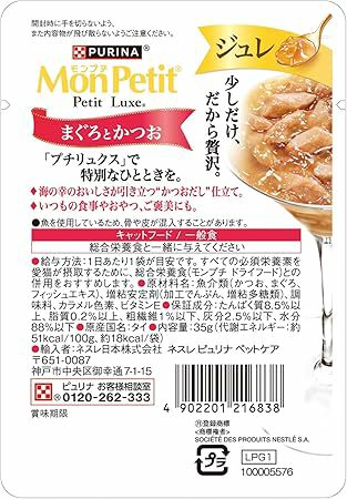他の画像を見る キャットフード 猫 パウチ【35g/1袋】8袋 モンプチ プチリュクスパウチ ピュリナ ジュレ 2種のアソート まぐろとかつお しらす添え&ささみ添え 35g×8P 特別なひと時にもぴったりミニサイズ おやつ ご褒美 トッピング【猫 誕生日】【同梱A】shippotv 販売価格 ¥ 1,857 税込 カートに入れる お気に入りに登録する