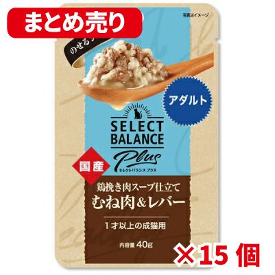 キャットフード 猫 ウェット アダルト【1袋/40g】×15個 セレクトバランス Plus 鶏挽き肉スープ仕立て むね肉&レバー 1歳以上の成猫用 セレクトバランス 皮膚と体の健康を維持するヘルシーフード【猫 誕生日】【同梱A】shippotv