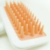 「スリッカーの使い易さを生かし、ラクラク脱毛」をコンセプトに、縦リブ構造のラバーピンを採用し20℃傾けました。やわらかいエラストマー樹脂が皮膚を傷めずに、驚くほど毛がとれます。スリッカー形状にし、顔・お尻等のデリケートな所にも使いやすくしました。