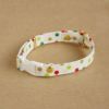 白地に赤・緑・黄緑・金の大きめドットがプリントされた、ちょっと変わったドットの首輪です。