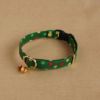 緑地に赤・緑・黄緑・金の大きめドットがプリントされた、ちょっと変わったドットの首輪です。