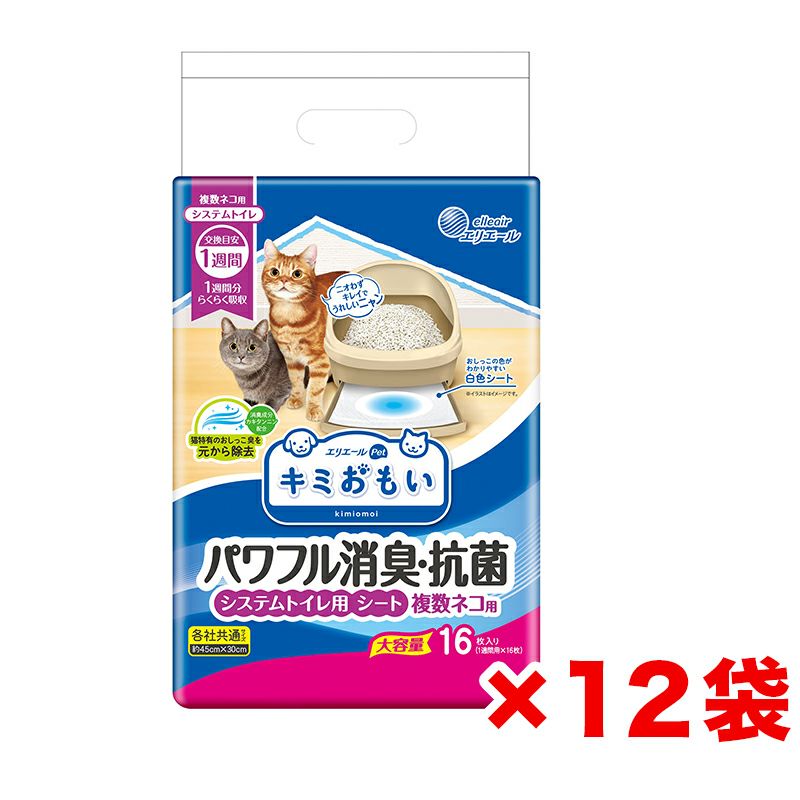 【大容量】キミおもい 消臭・抗菌シート 複数ネコ用 1週間分 16枚・12パックセット【同梱B】