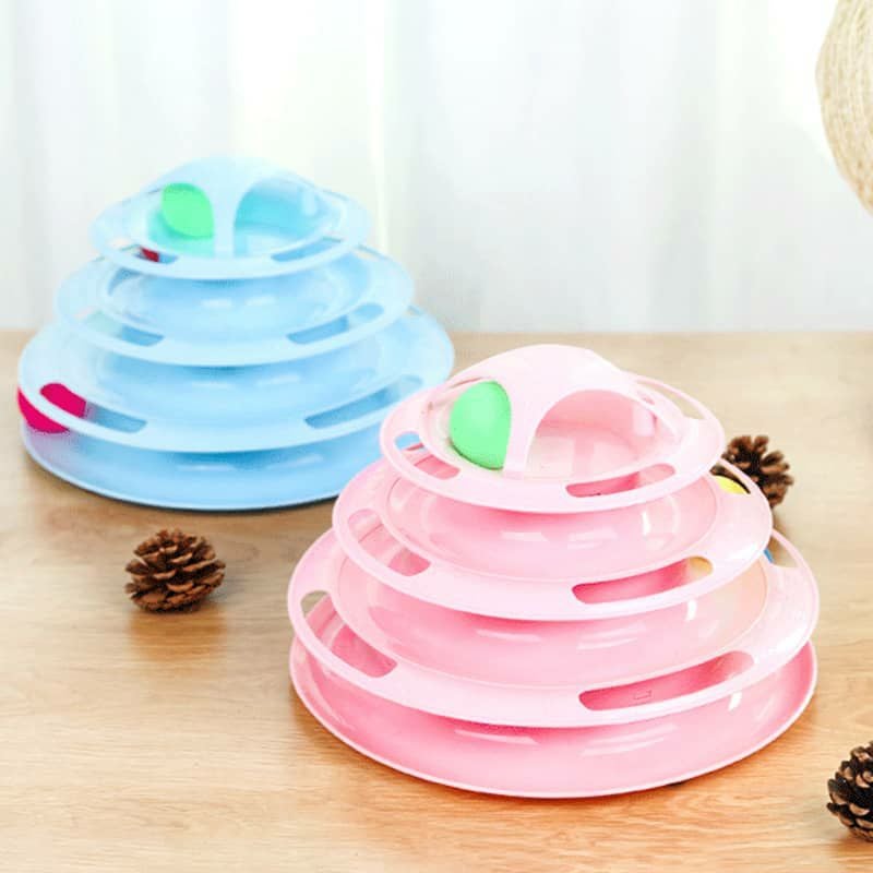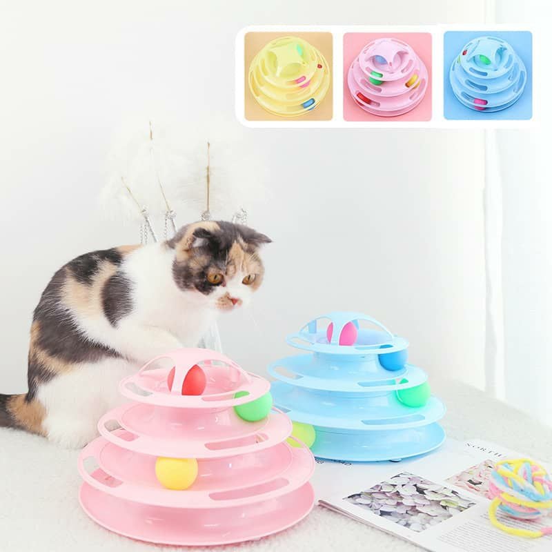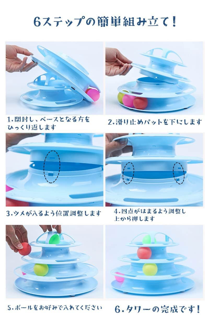 猫用おもちゃ くるくるタワー 4層回転キャットボールタワー