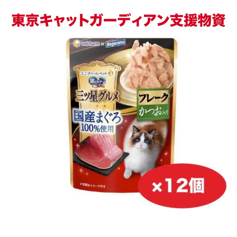 TCG支援物資 【35g×12個】銀のスプーン 三ツ星グルメパウチ 国産まぐろ100% フレーク かつお入り