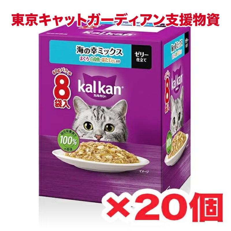 TCG支援物資 【60g×160個】カルカン パウチ 海の幸ミックス まぐろ・白身魚・ほたてだし入り