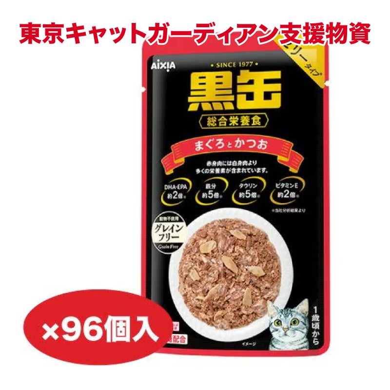 TCG支援物資 【70g×96個】黒缶パウチ まぐろとかつお