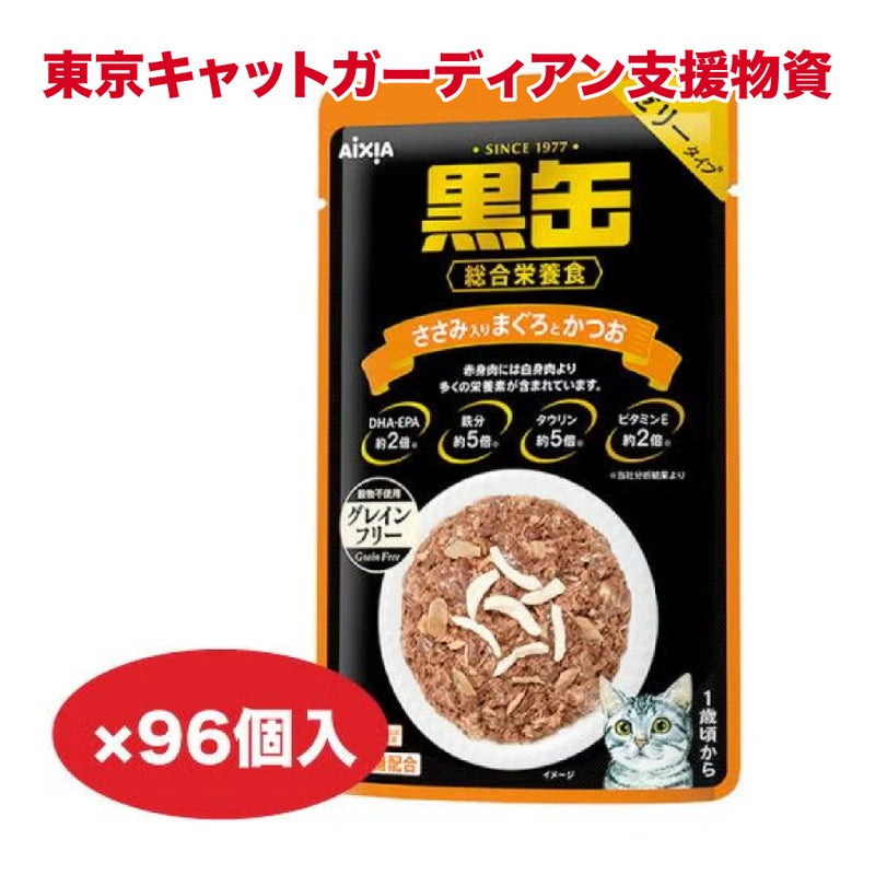 TCG支援物資 【70g×96個】黒缶パウチ ささみ入りまぐろとかつお