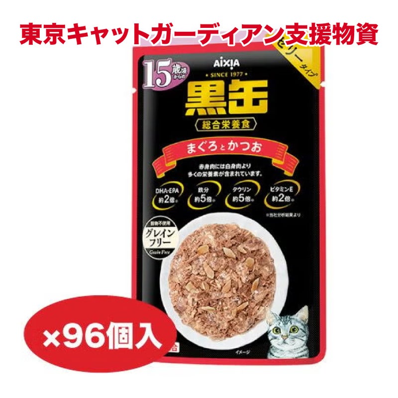 TCG支援物資 【70g×96個】黒缶パウチ 15歳頃からのまぐろとかつお