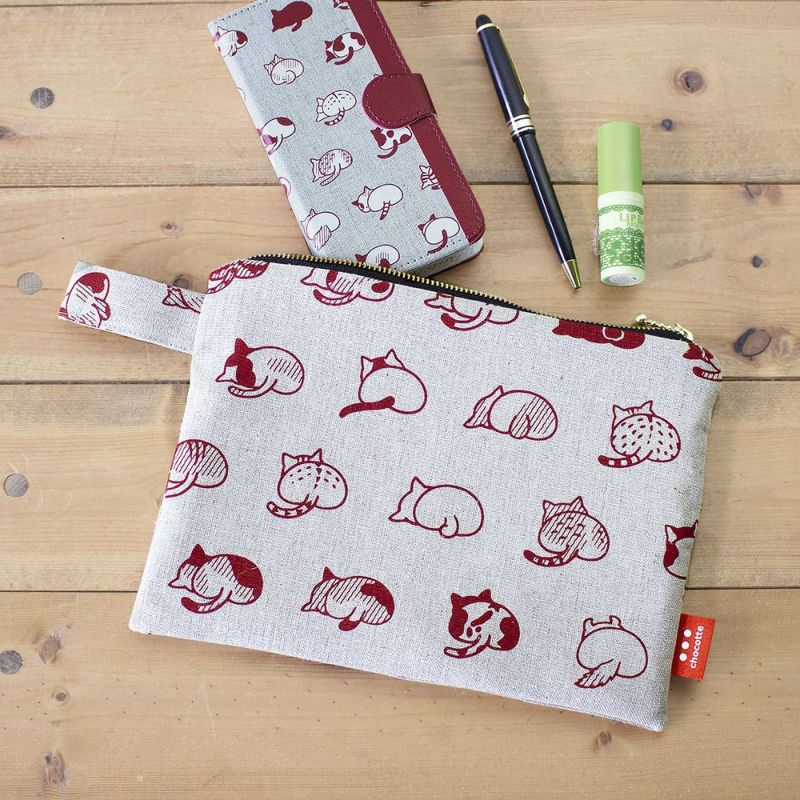 108匹の「ねこのおしり」をシルクスクリーンプリントしたリネン生地を使っています。