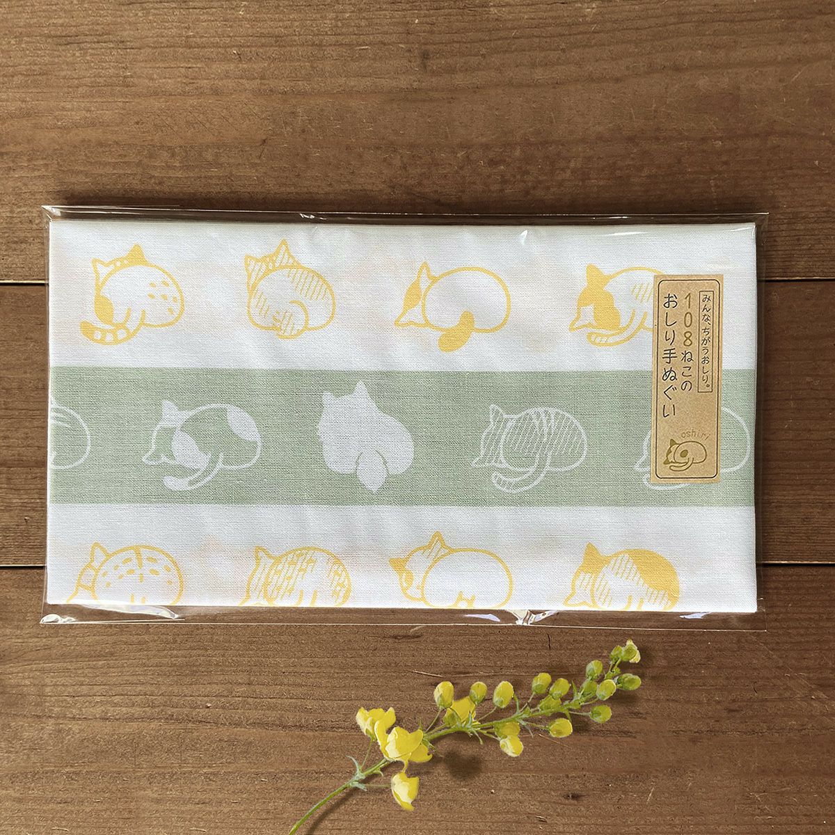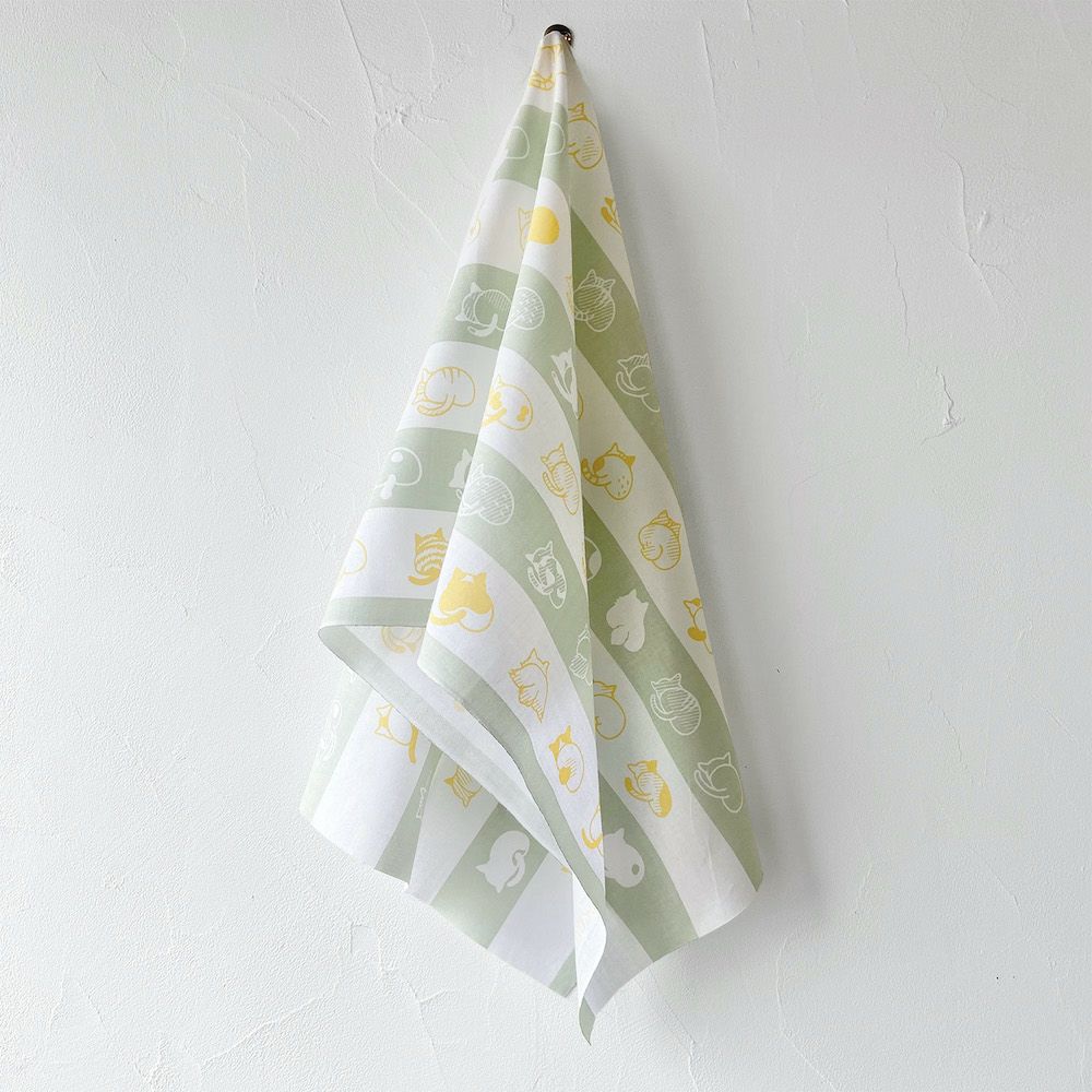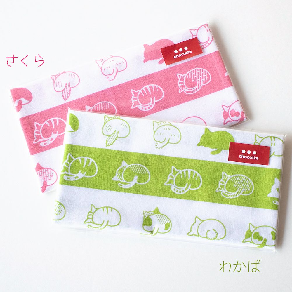 108ねこのおしり手ぬぐい・若草(2色刷) 【同梱B】