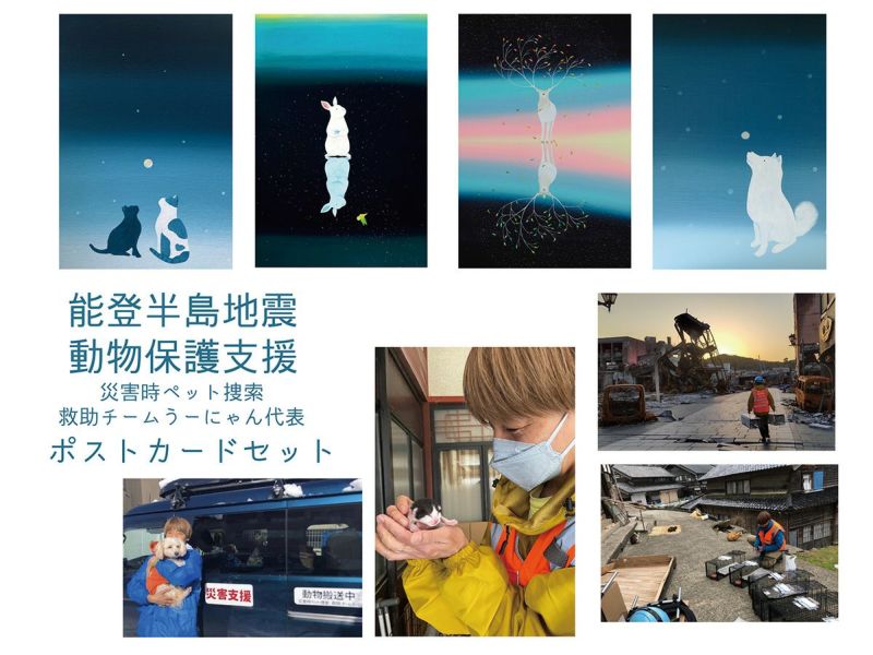 【能登半島地震 被災地支援】ポストカードセット 8枚 うさ イラスト レスキュー写真 令和6年能登半島地震 保護犬 保護猫 チームうーにゃん 【同梱B】